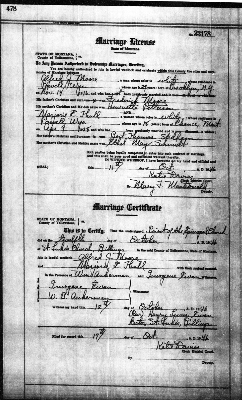 (1) Marjorie "Margie" Ethel (nee Stidham) Thull October 12, 1946 in Billings, Yellowstone County, Montana. (Marriage Certificate: #23178.) (She married 3 times more. See her page.)