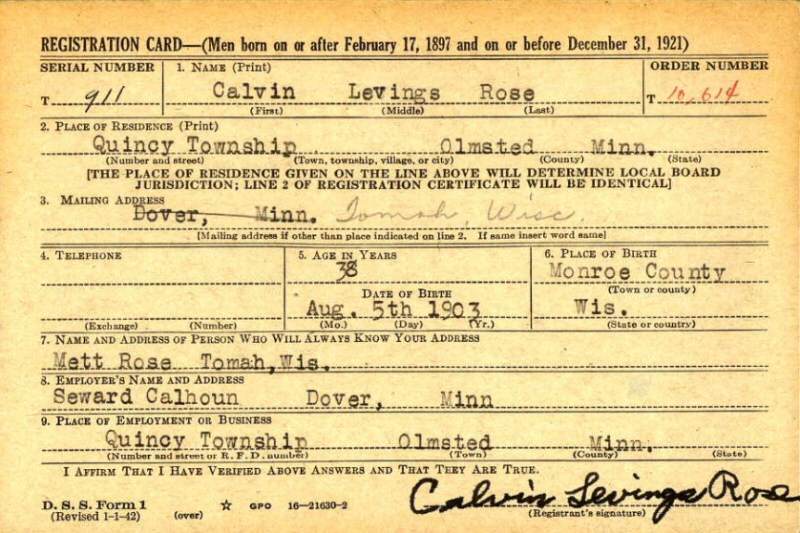 February 16, 1942 - WWII Draft Registration Date.