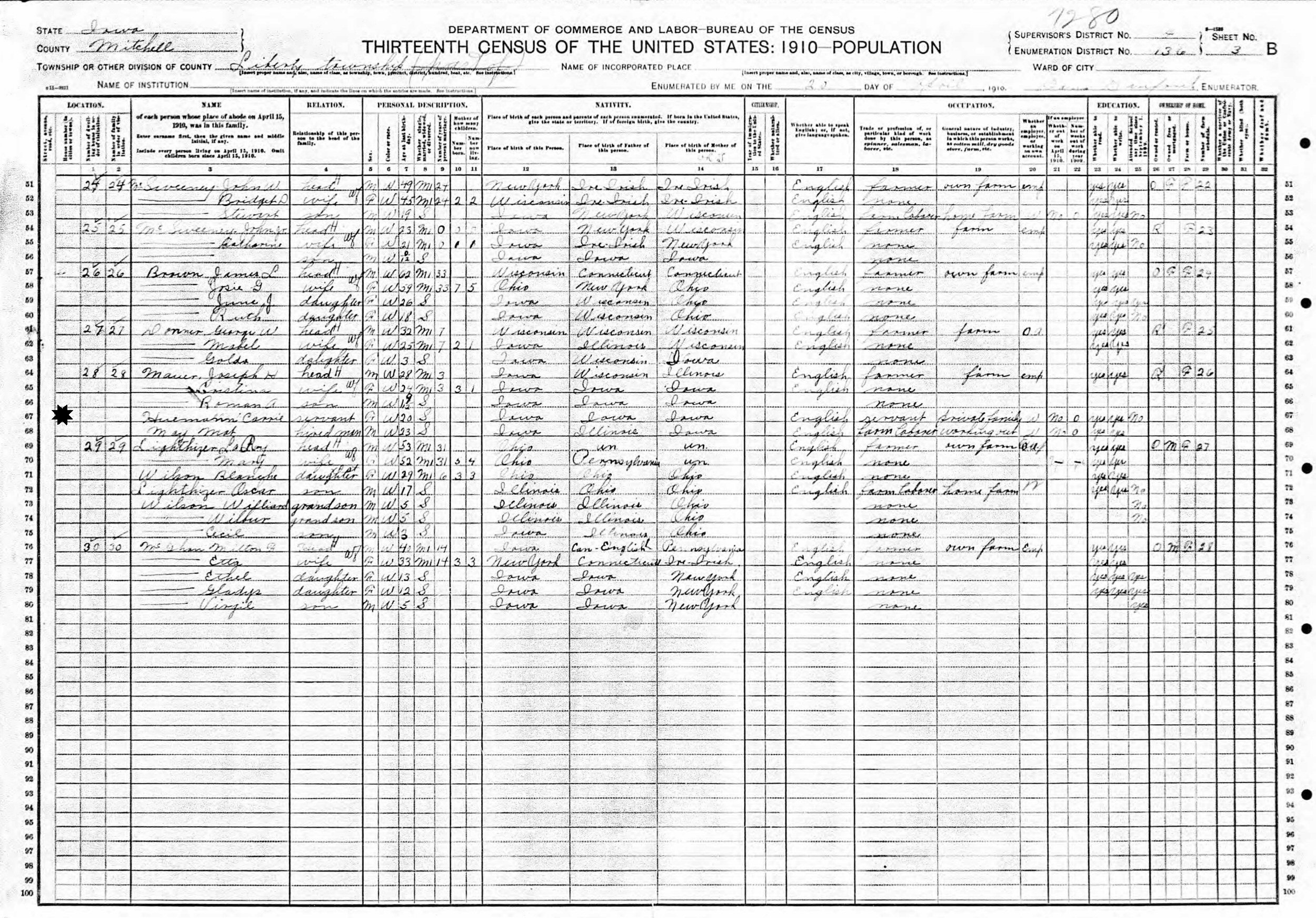 April 20, 1910 - Supervisor's District 4, Enumeration District 136, Liberty, Mitchell County, Iowa (Servant).
