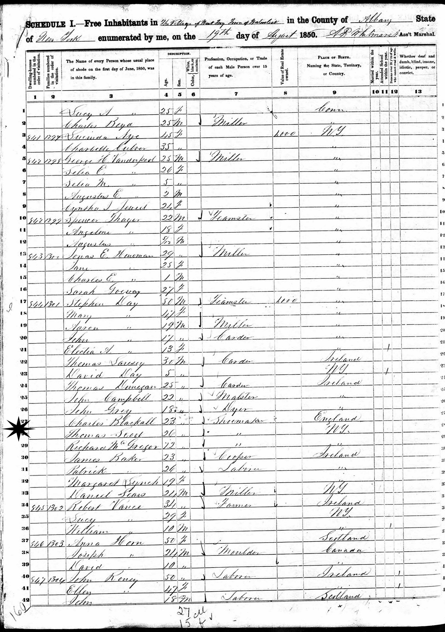August 19, 1850 - West Troy Village, Watervliet, Albany County, New York.