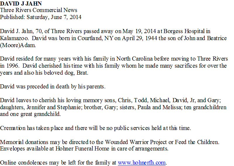 Notes for DAVID J JAHN: