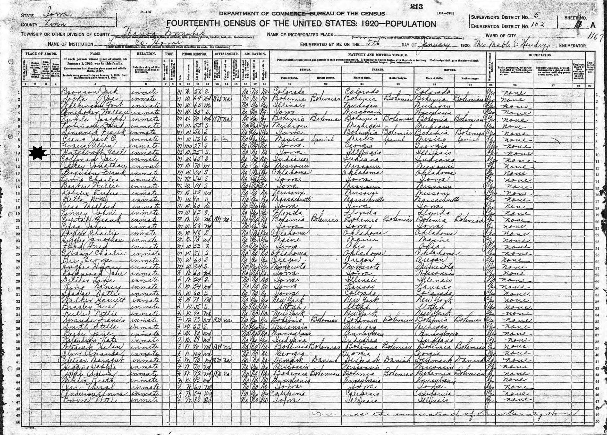 January 5, 1920 - Linn County Home, Supervisor's District 5, Enumeration District 102, Marion Township, Linn County, Iowa.