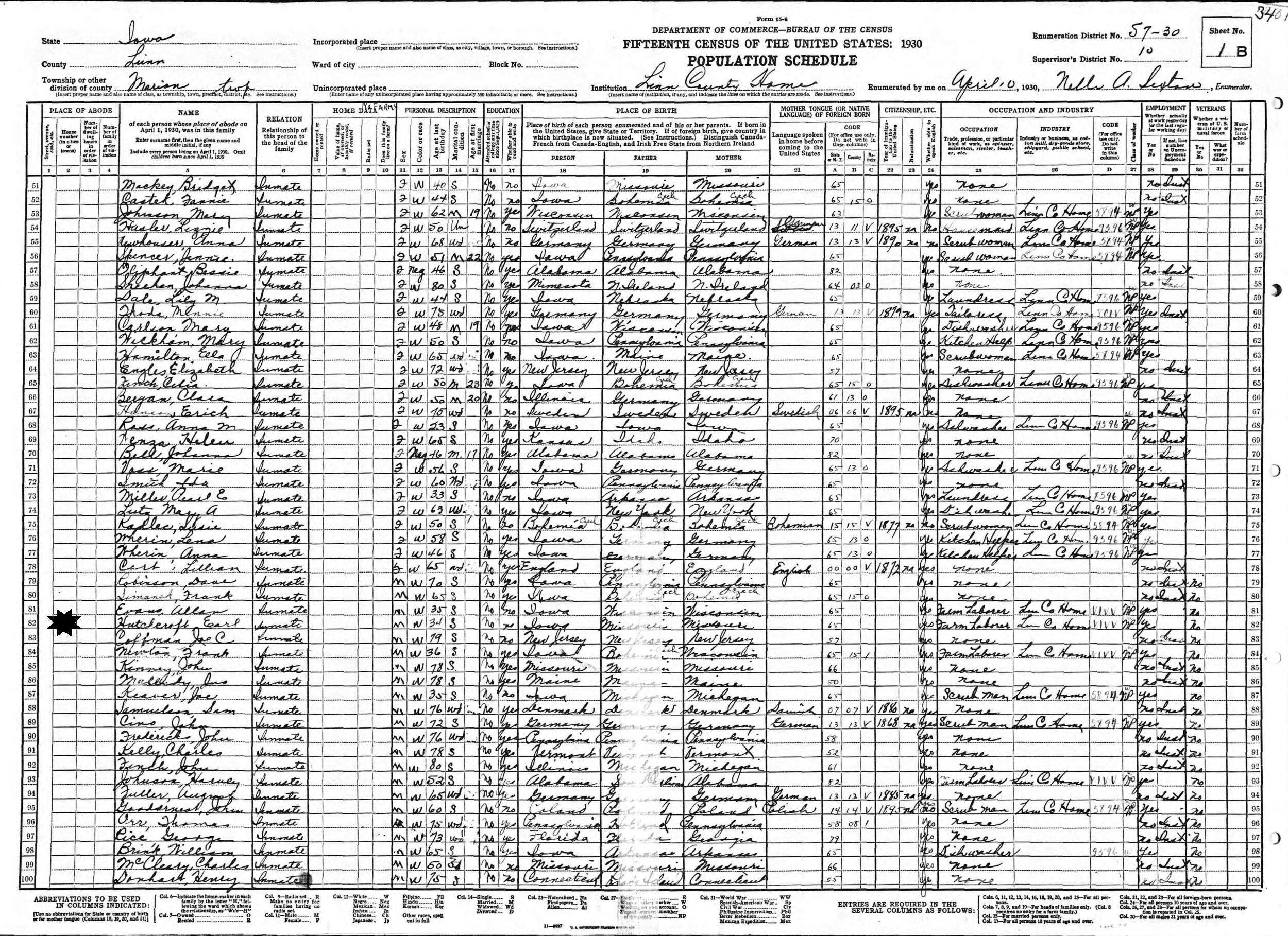 April 10, 1930 - Linn County Home, Supervisor's District 10, Enumeration District 57-30, Marion Township, Linn County, Iowa.
