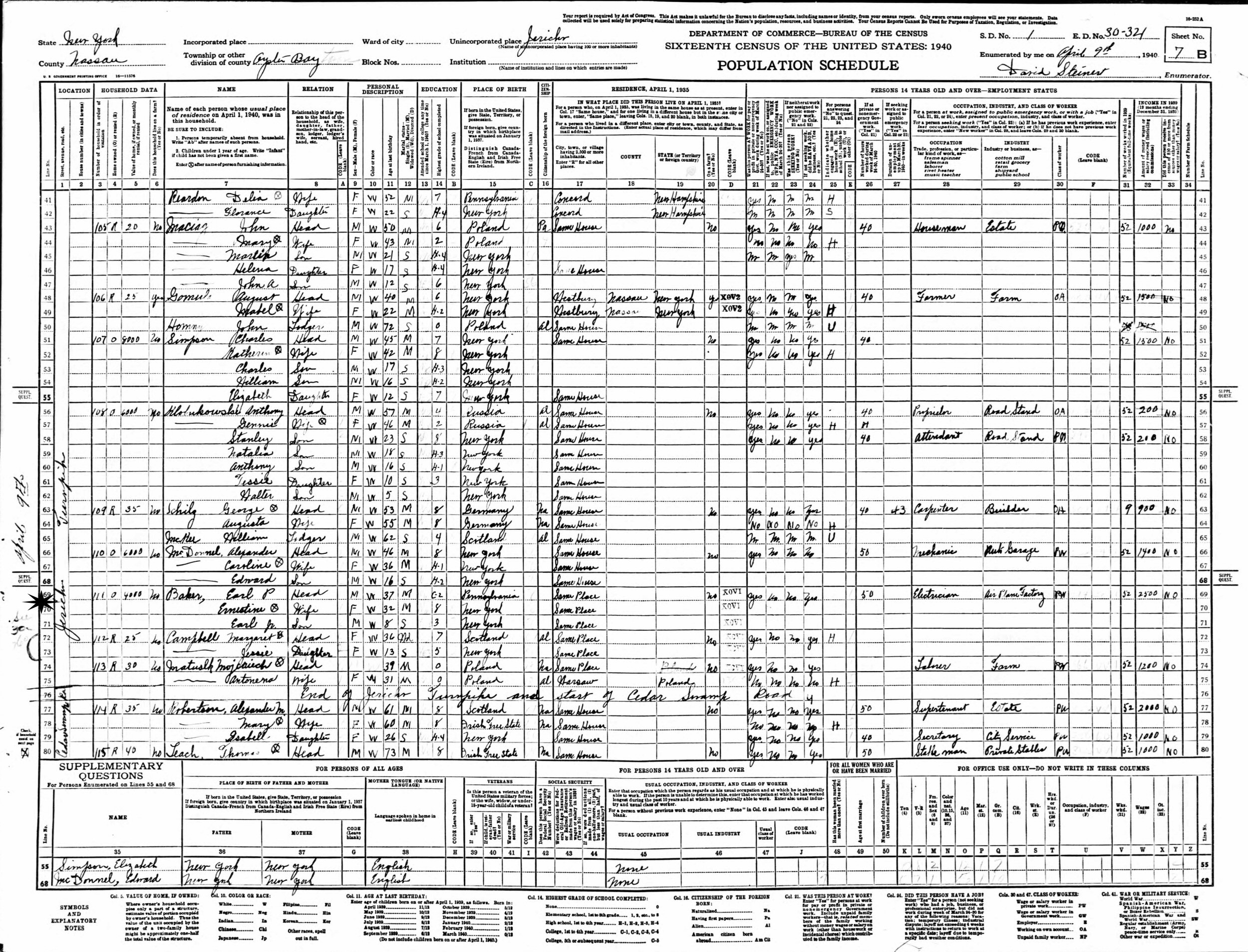 April 9, 1940 - Jericho Turnpike, Supervisor's District 1, Enumeration District 30-321, Jericho, Oyster Bay, Nassau County, New York.