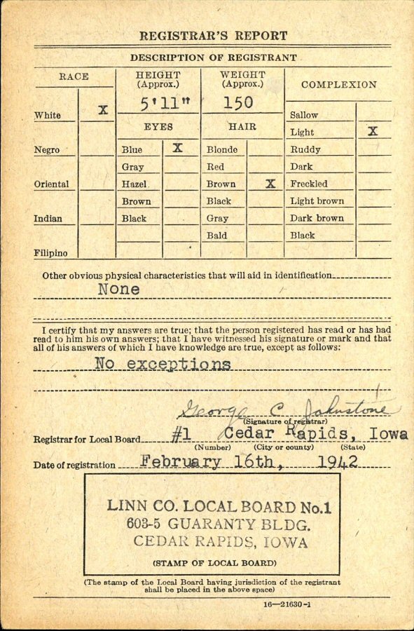 February 16, 1942 - WWII Draft Registration Date.