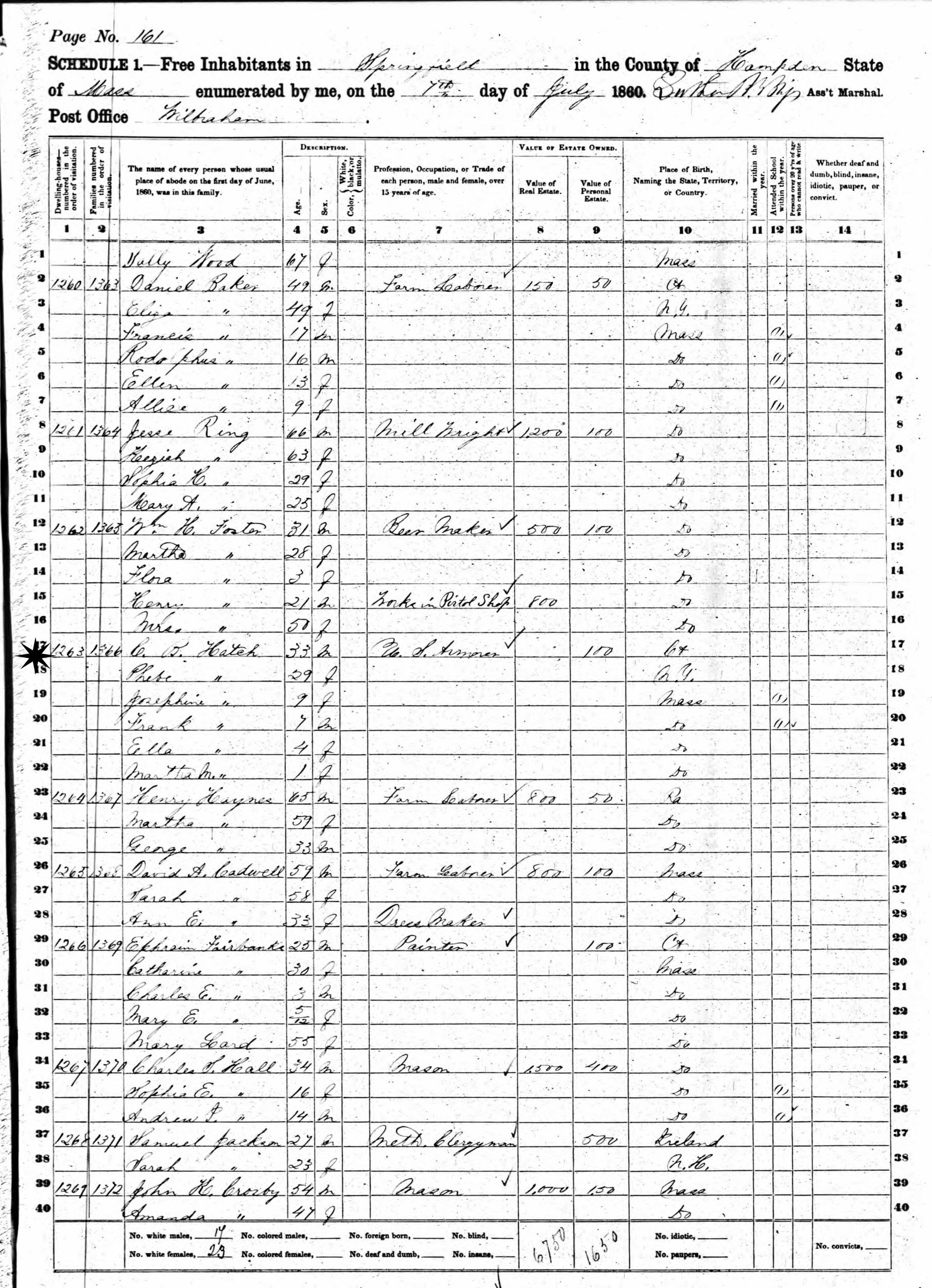 July 6, 1860 - Milbraham, Springfield, Hampden County, Massachusetts.