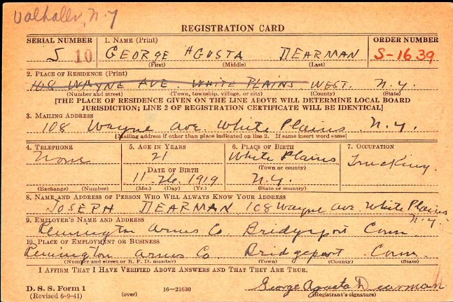 July 1, 1941 - 108 Wayne Avenue, White Plains, Westchester County, New York.