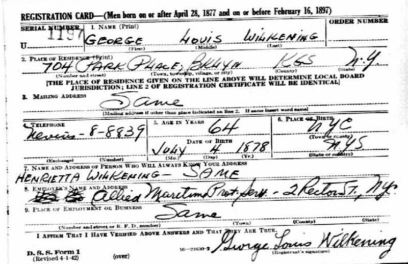 Notes for GEORGE LOUIS WILKENING: