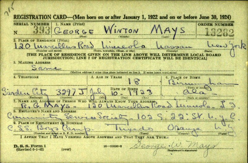 June 30, 1942 - 120 Marcellus Road, Mineola, Nassau County, New York.