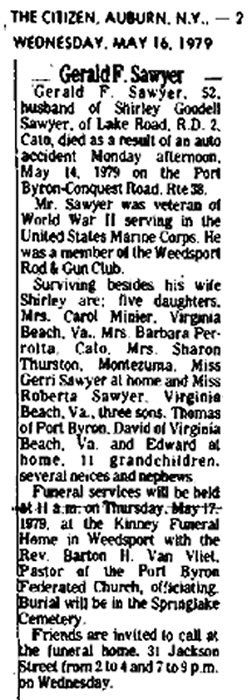 Died: May 14, 1979 in Port Byron, Cayuga County, New York. (Car accident.)