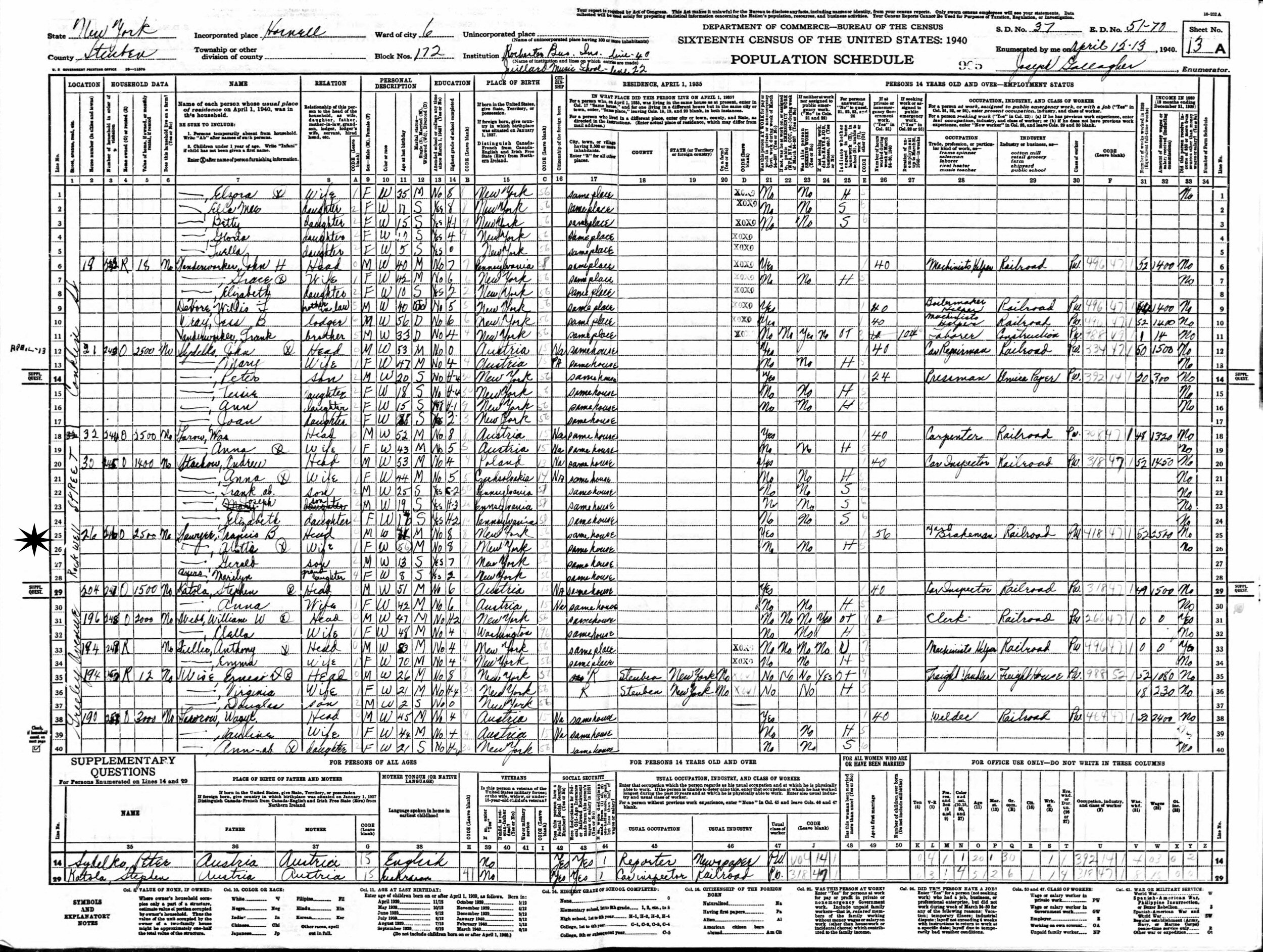 April 12-13, 1940 - 26 Rockwell Street, Ward 6, Block 172, Supervisor 37, Enumeration District 51-70, Hornell, Steuben County, New York.