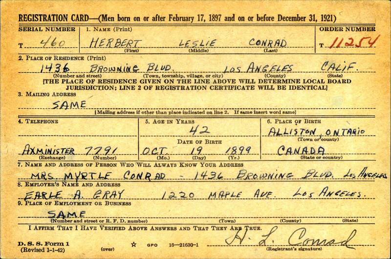 February 15, 1942 - WWII Registration Date.