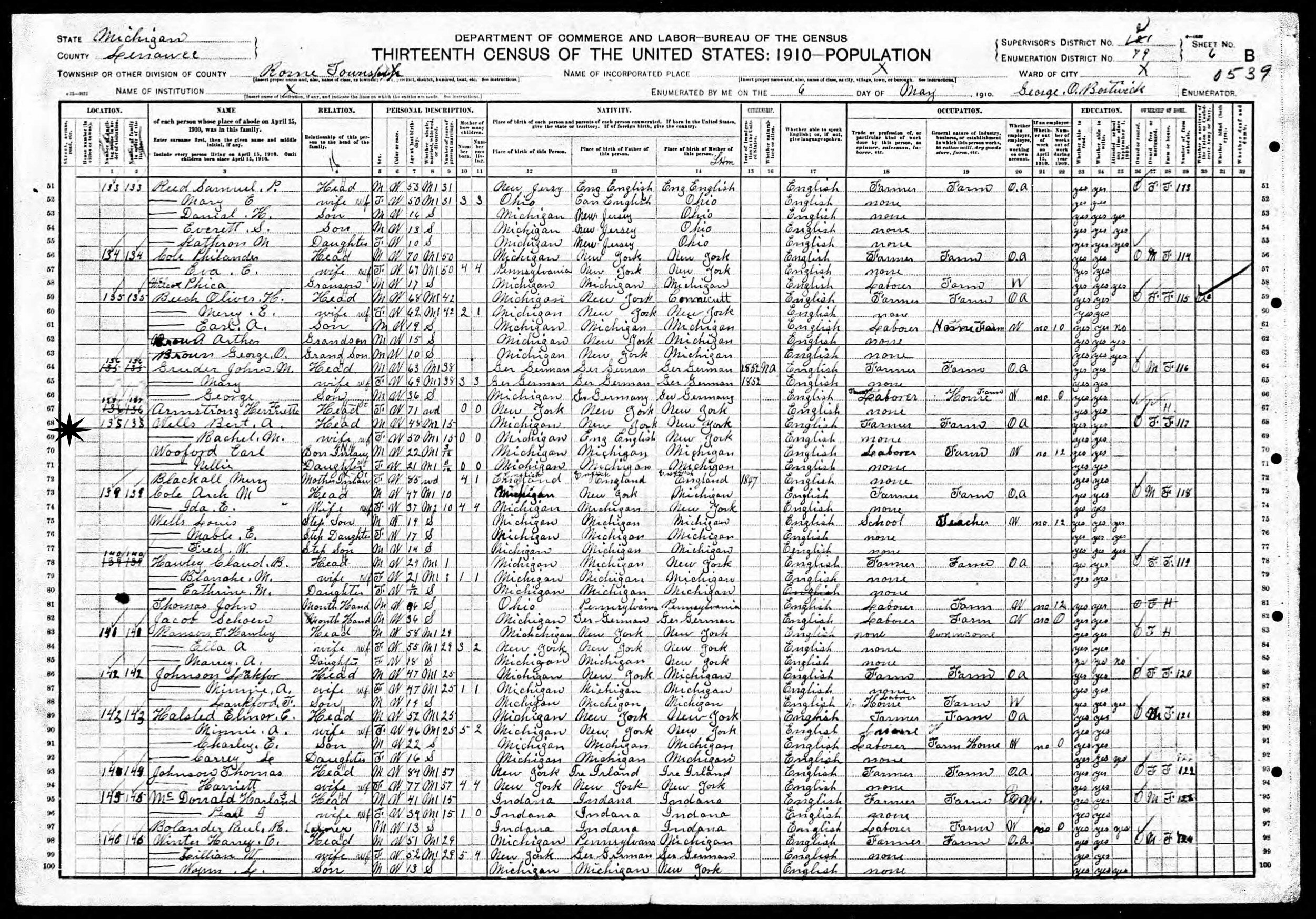 May 6, 1910 - Supervisor's District 2, Enumeration 79, Rome, Lenawee County, Michigan (w/in-laws).