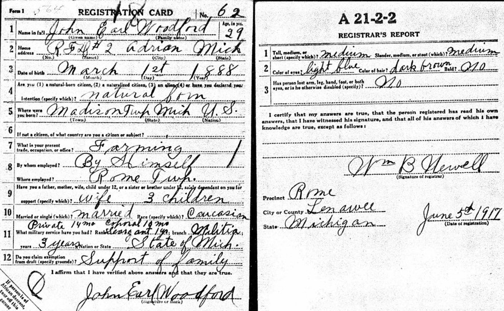Born: March 1, 1888 in Madison Township, Lenawee County, Michigan.