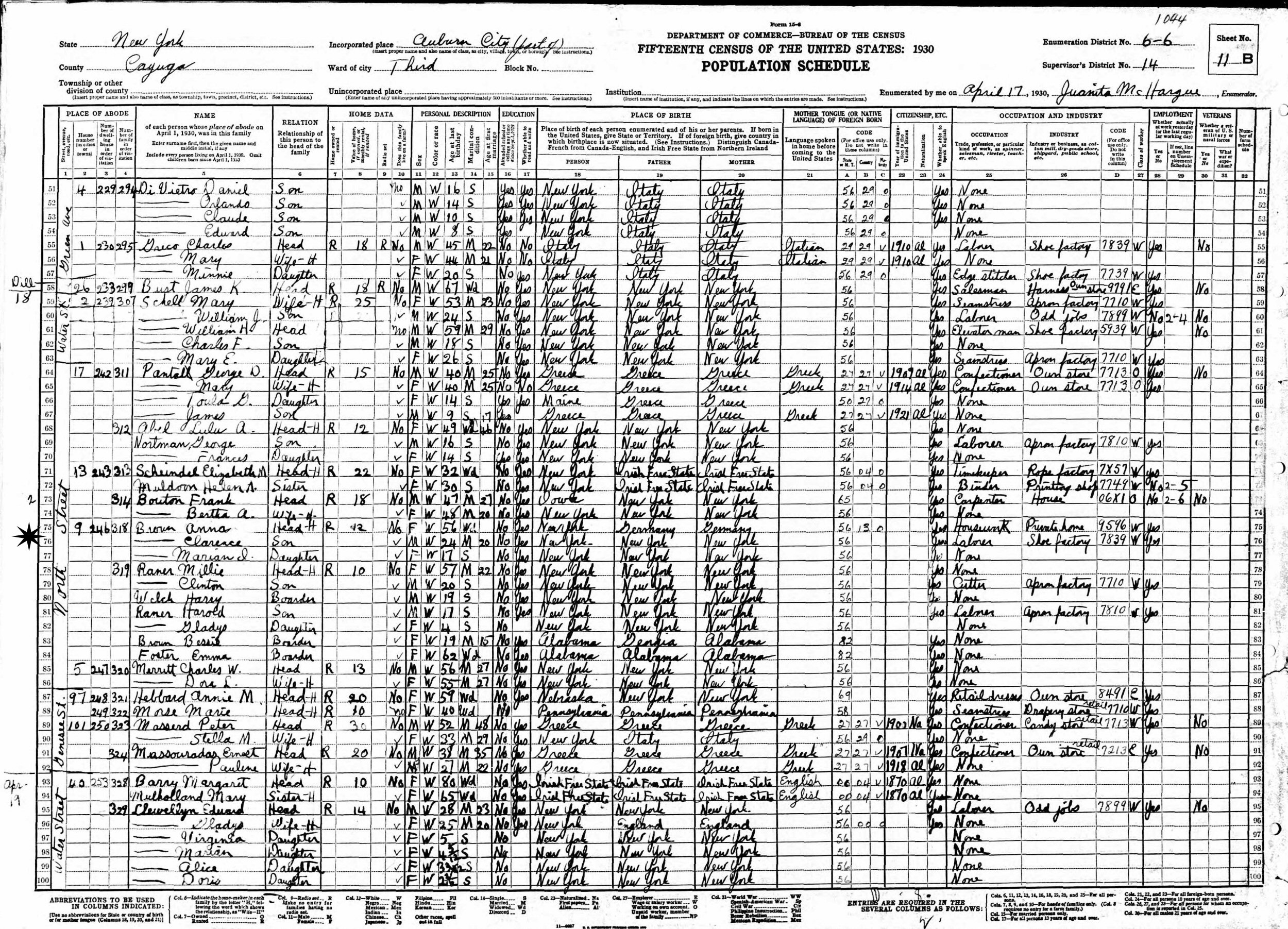 April 17, 1930 - 9 North Street, Ward 3, Supervisor's District 14, Enumeration District 6-6, Auburn, Cayuga County, New York.