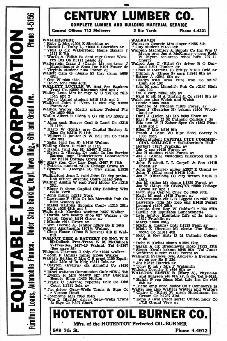 AKA: Went by Walling in 1929 and 1934 Des Moines City Directory.
