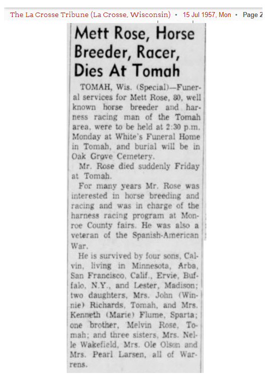 Died: July 5, 1957 in Tomah, Monroe County, Wisconsin.