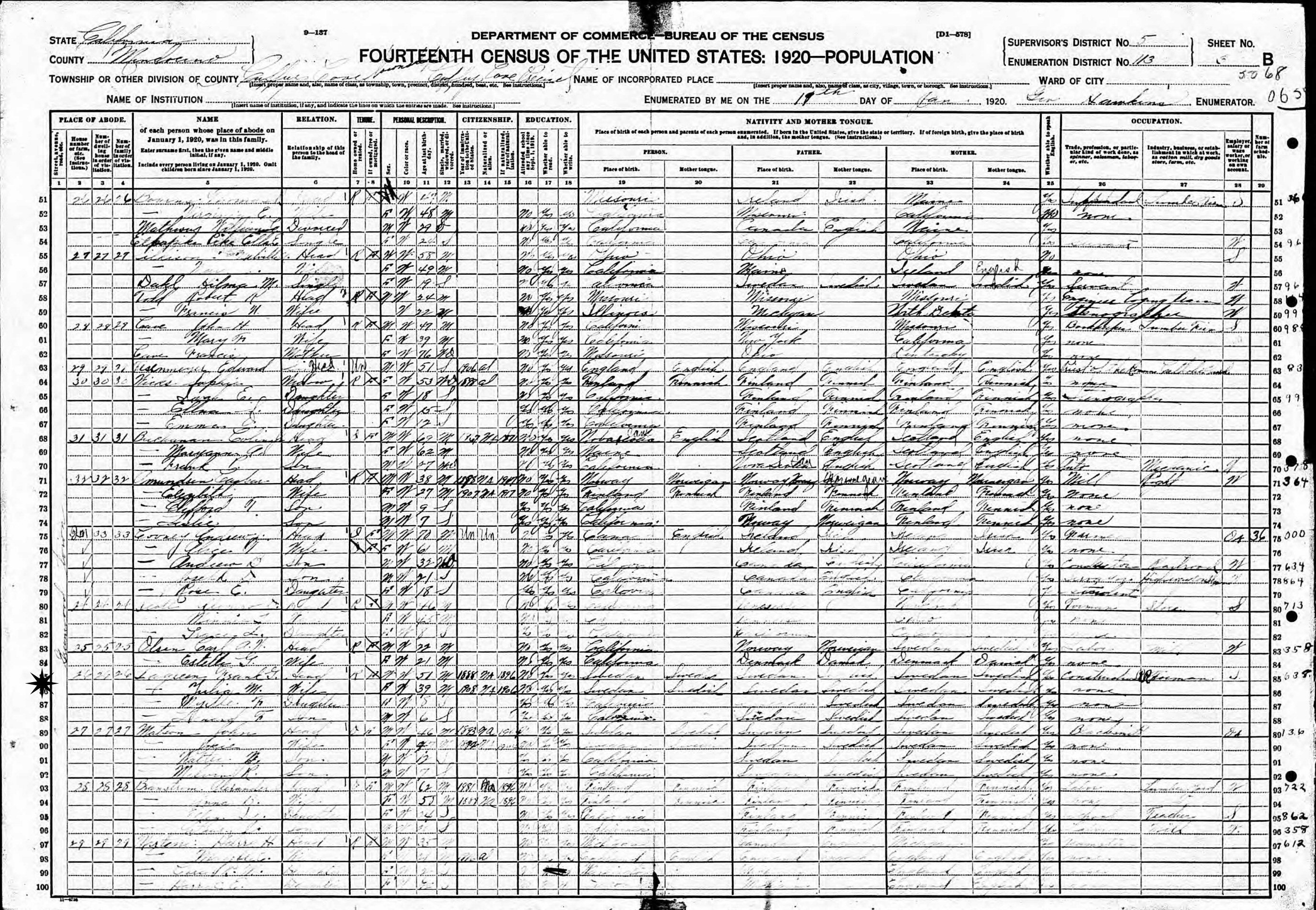 January 19, 1920 - Greenwood Down, Cuffeys Cove, Supervisor's District 5, Enumeration District 113, Mendocino County, California.