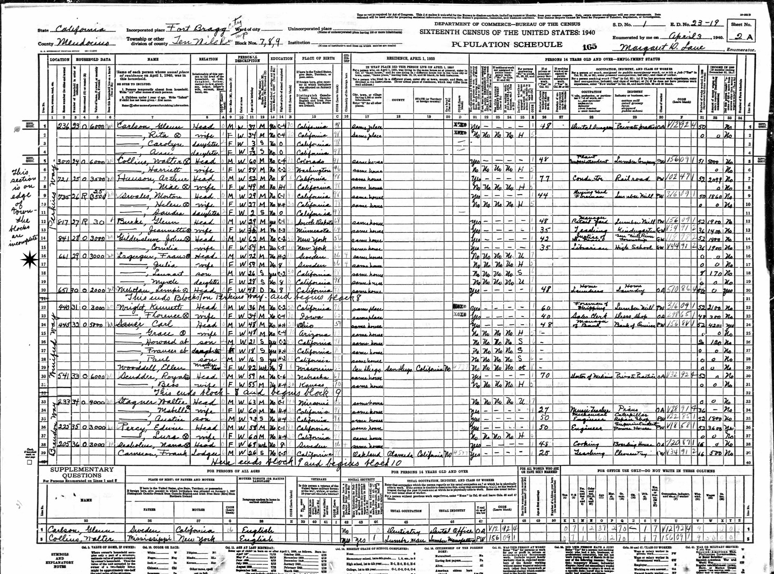 April 3, 1940 - 661 Perkins Way, Blocks 7, 8, 9, Supervisor's District 1, Enumeration District 23-19, Ten Mile River Township, Fort Bragg, Mendocino County, California.