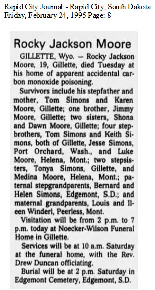 Died: February 21, 1995 in Gillette, Campbell County, Wyoming.