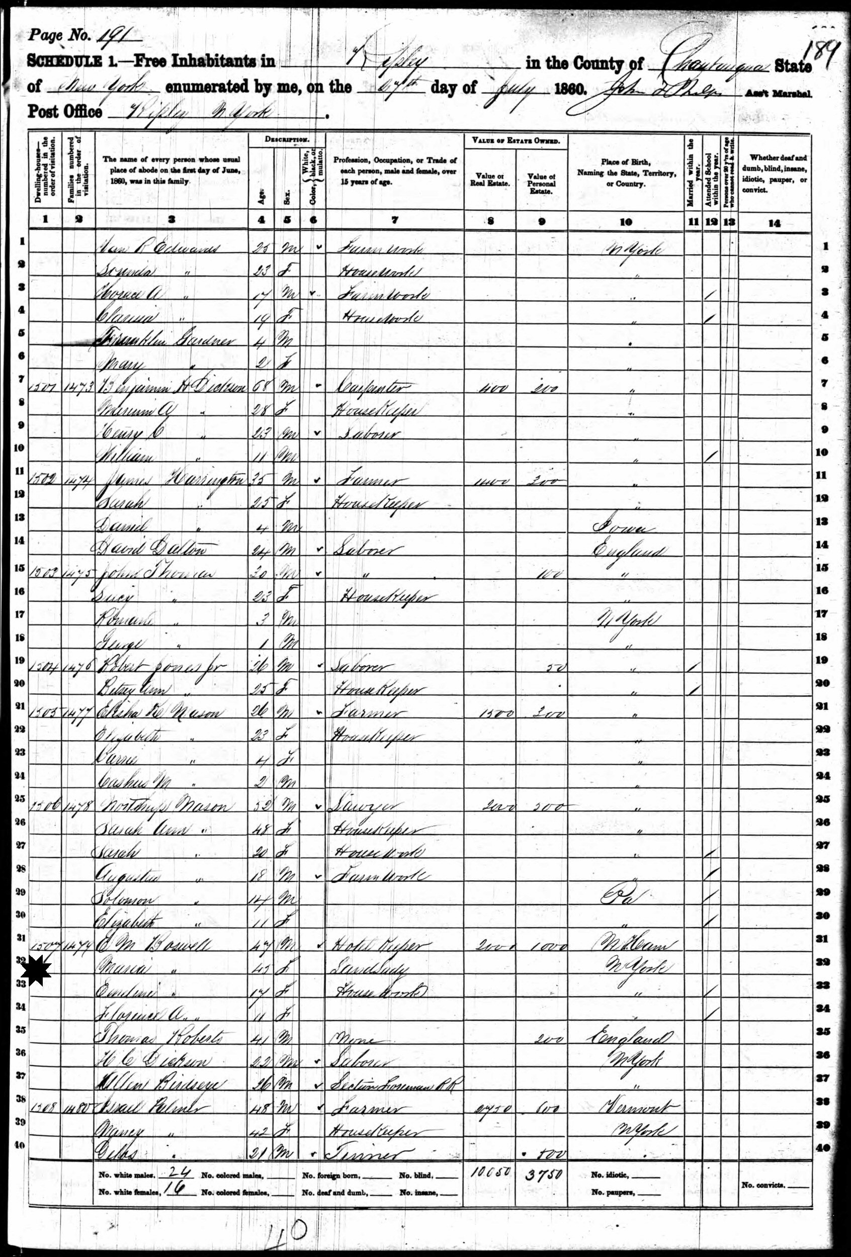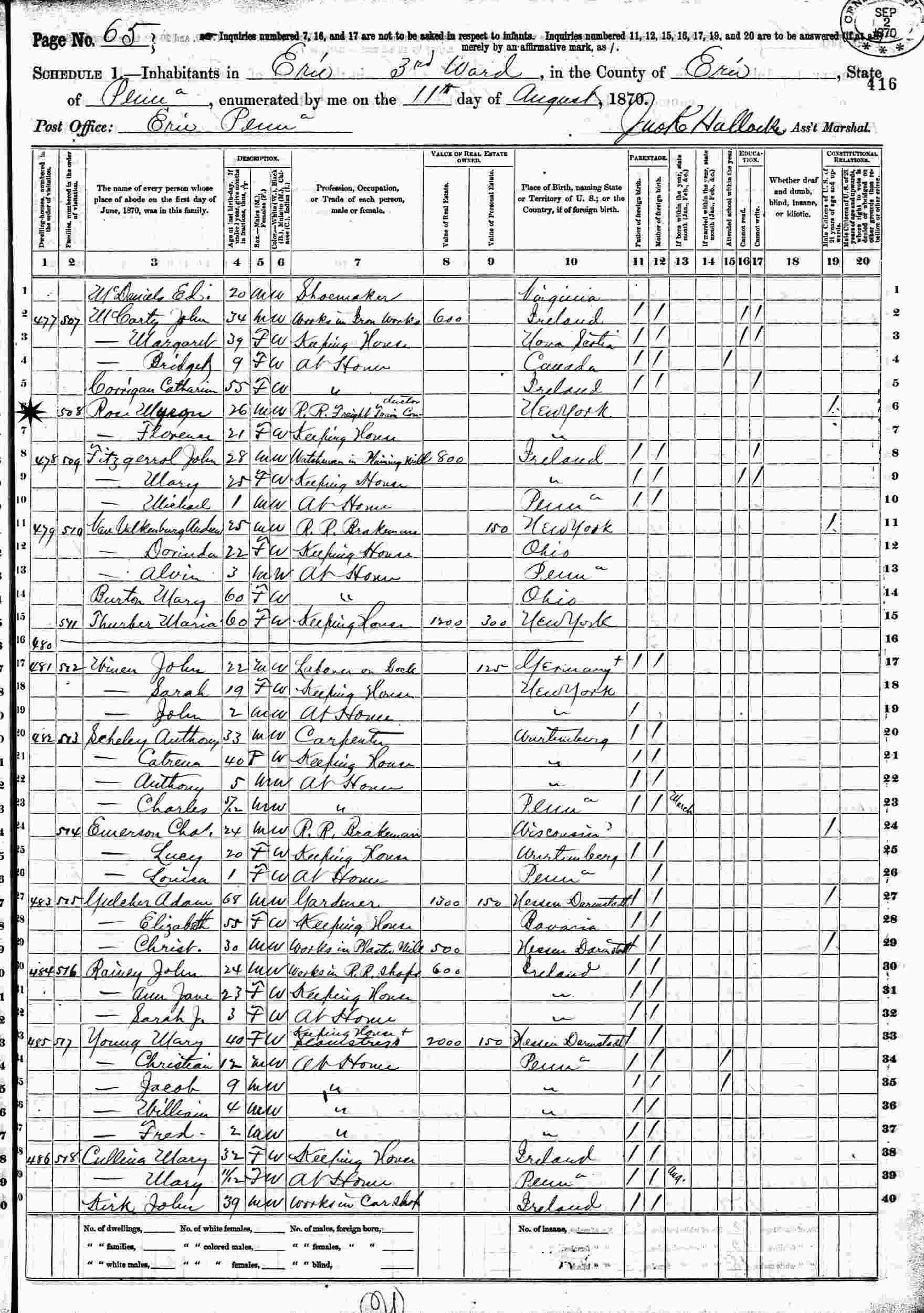 August 11, 1870 - Ward 3, Erie, Erie County, New York.