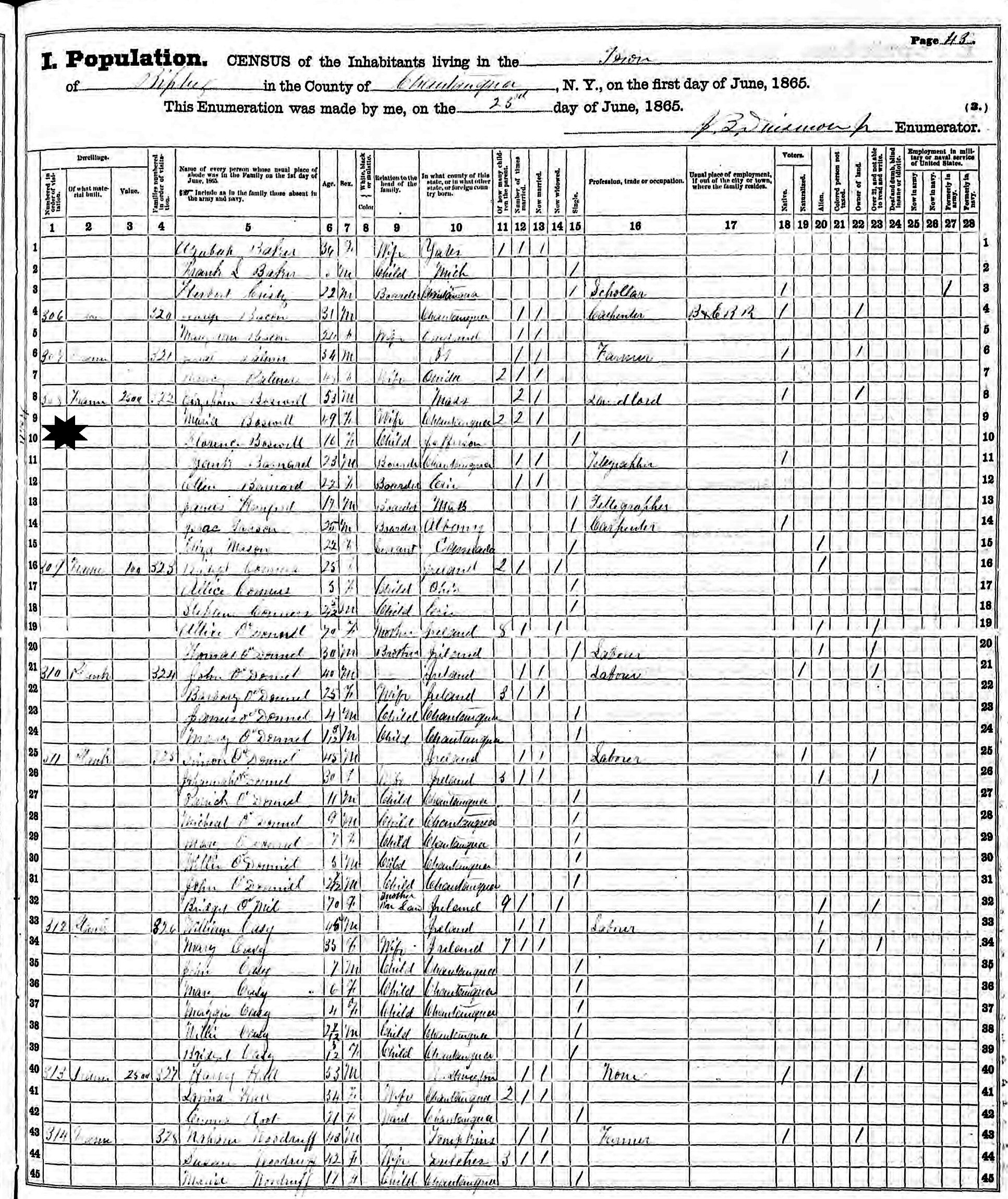 June 25, 1865 - New York State - Ripley, Chautauqua County, New York.