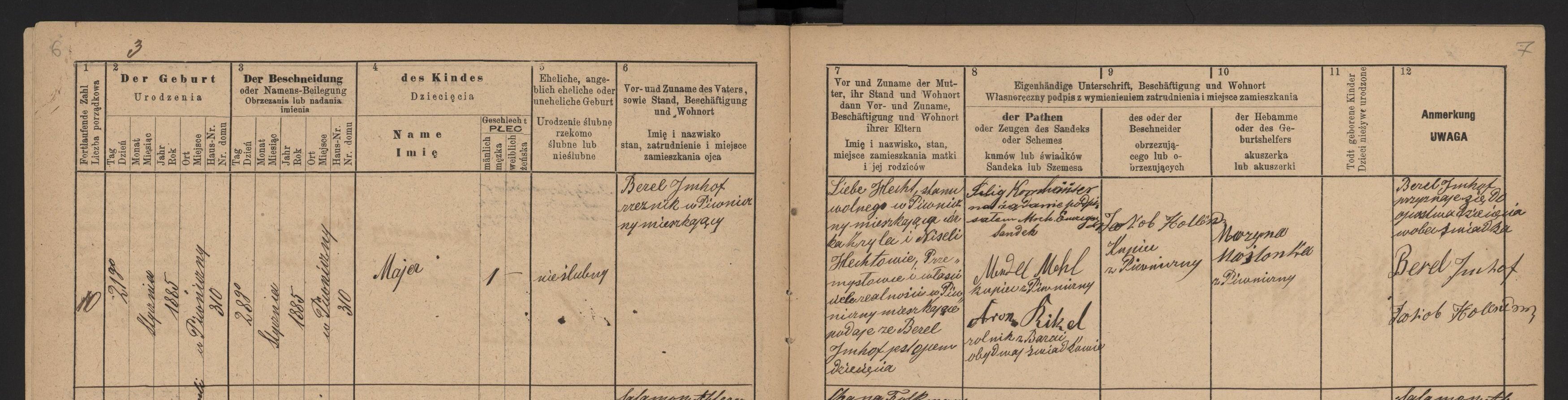 Bris: January 28, 1885 in Piwniczna, Poland.