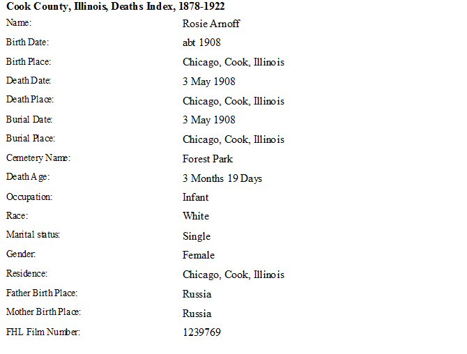 Buried: May 3, 1908 in Forest Park Cemetery, Chciago, Cook County, Illinois.