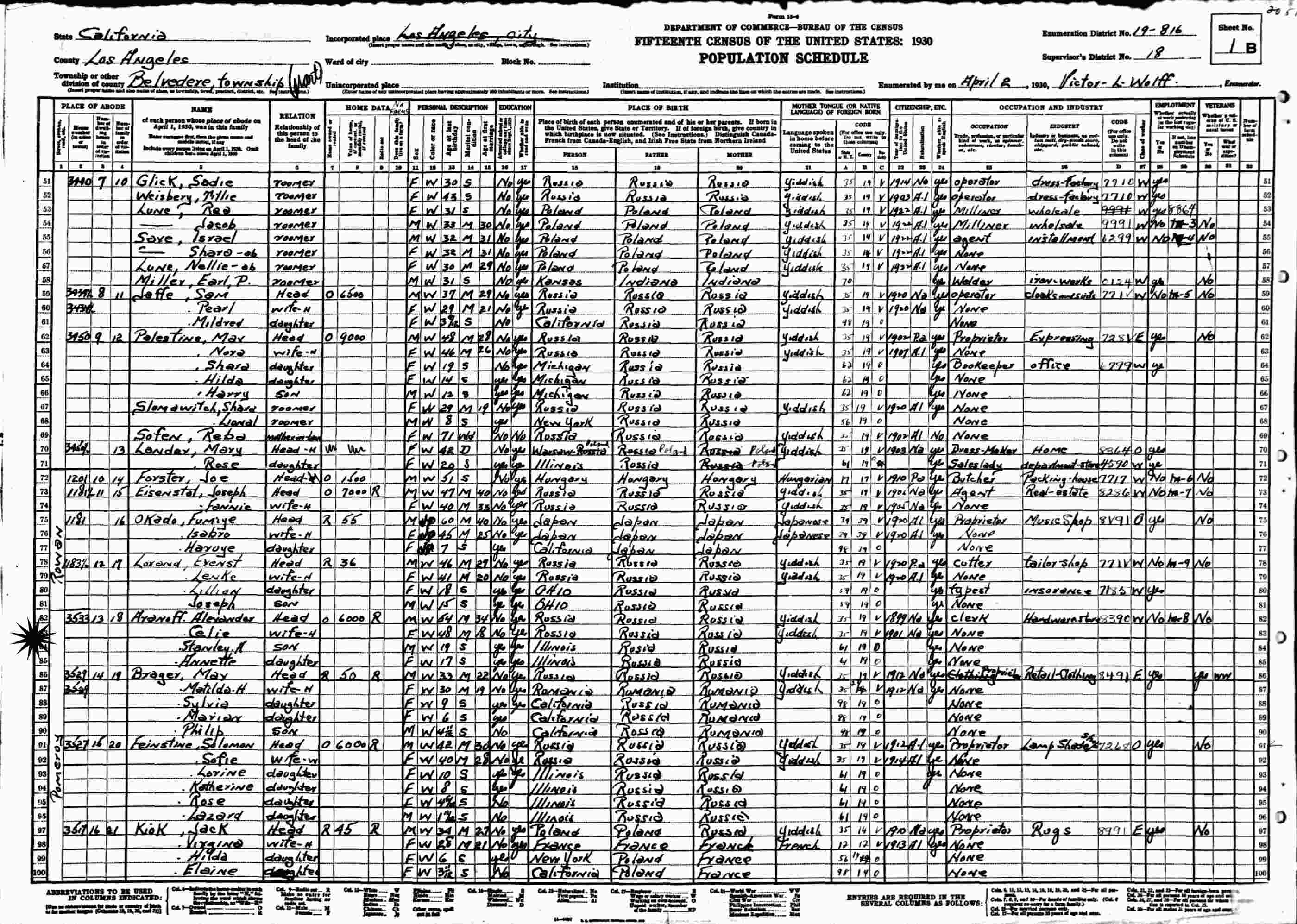April 2, 1930: 3533 Pomeroy, Belvedere, Supervisor's District 18, Enumeration District 19-816, Los Angeles County, California.