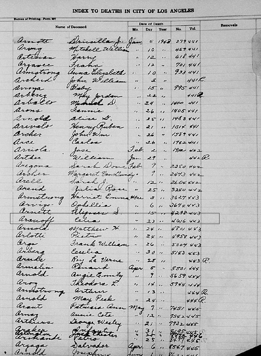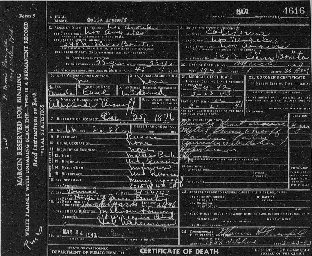 Died: March 23, 1943 in Los Angeles County, California.