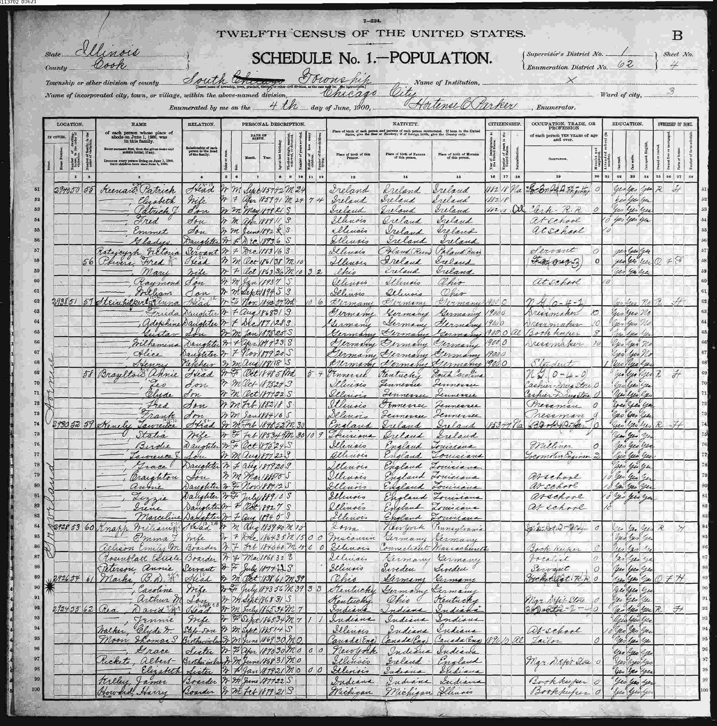 June 4, 1900 - 2926 Groveland Avenue, Ward 3, Chicago, Cook County, Illinois.