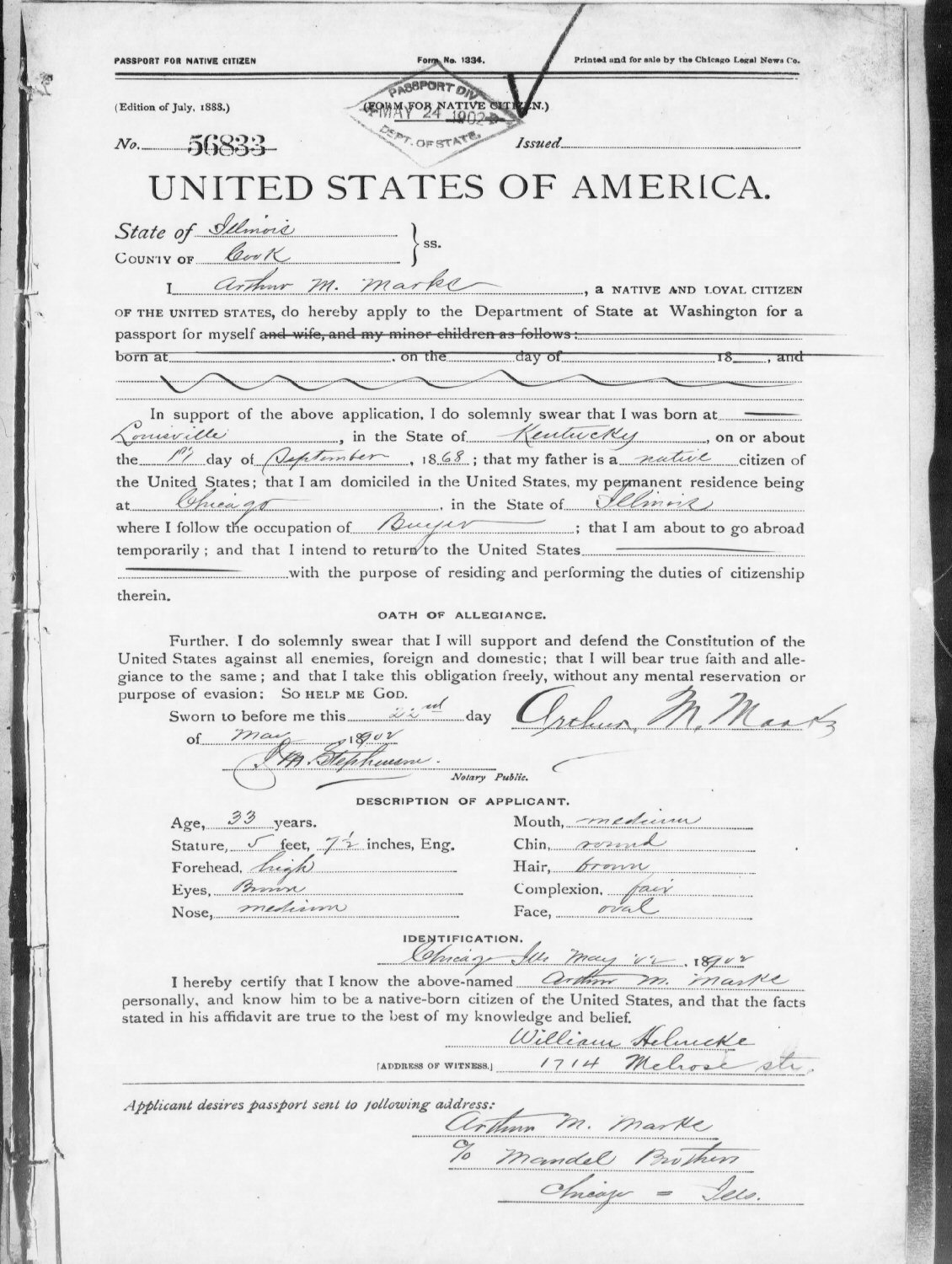 Married: Beatrice "Birdie" Auerbach March 15, 1906 in Chicago, Cook County, Illinois.