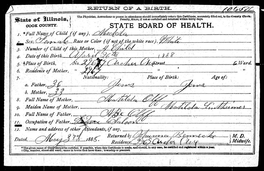 Born: April 26, 1888 in Chicago, Cook County, Illinois.