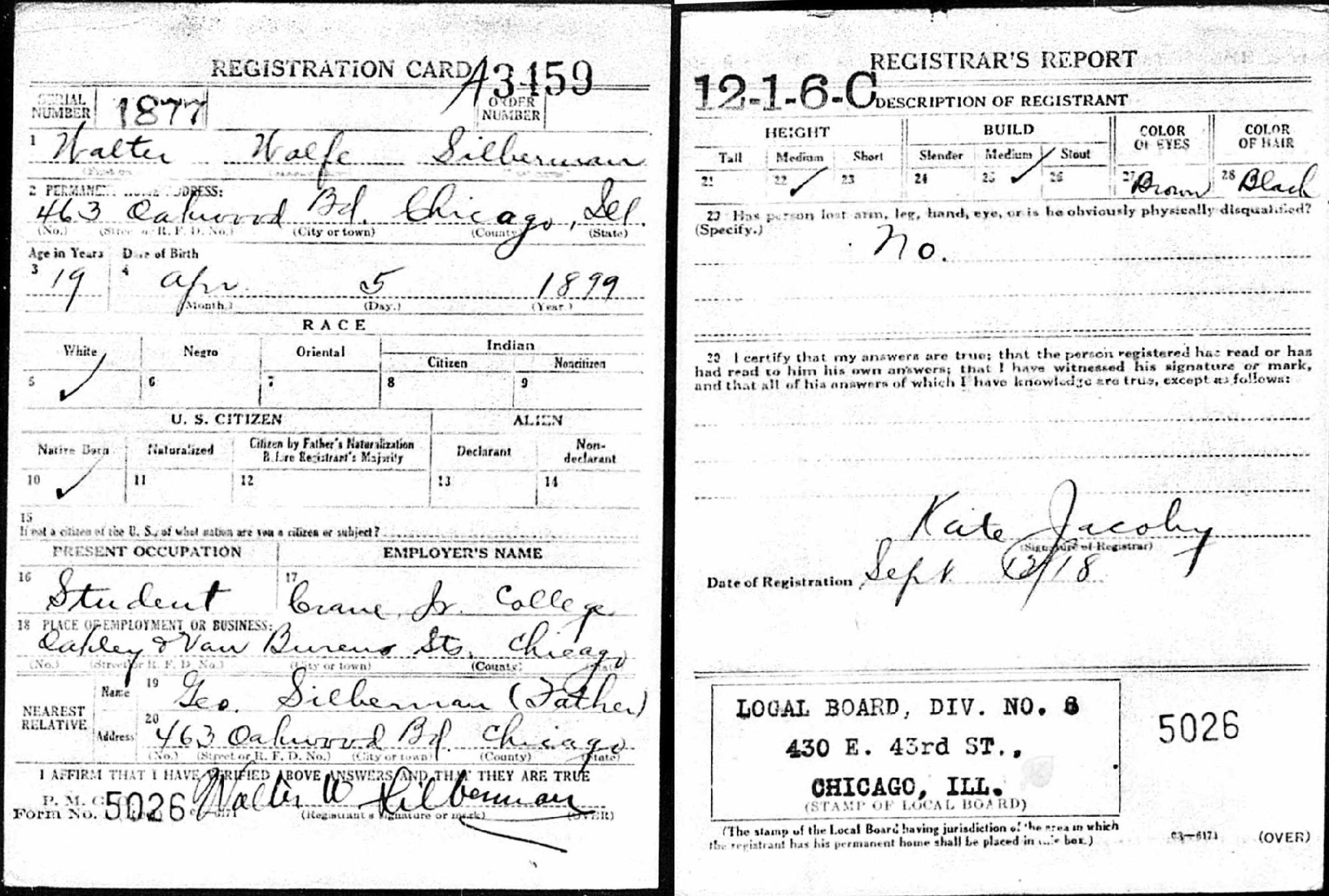 September 12, 1918 - 463 Oakwood Boulevard, Chicago, Cook County, Illinois.