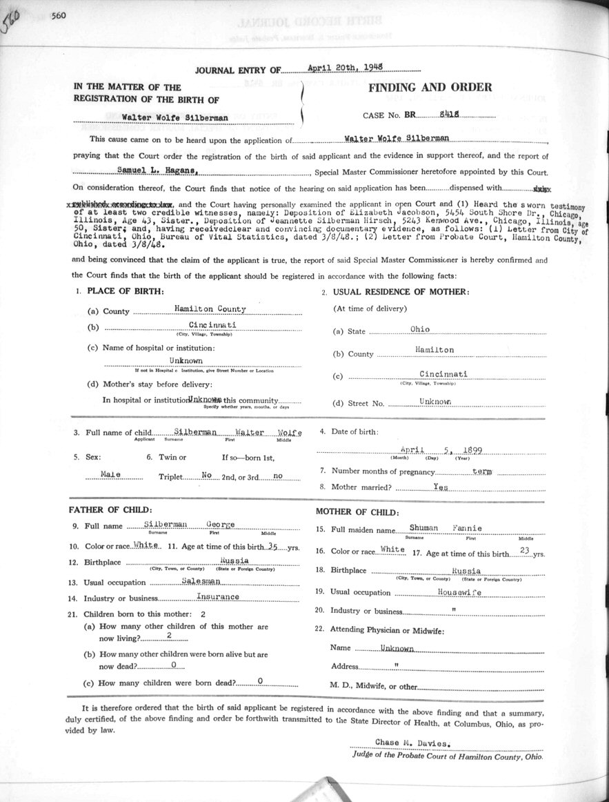 Born: April 5, 1899 in Cincinnati, Hamilton County, Ohio.