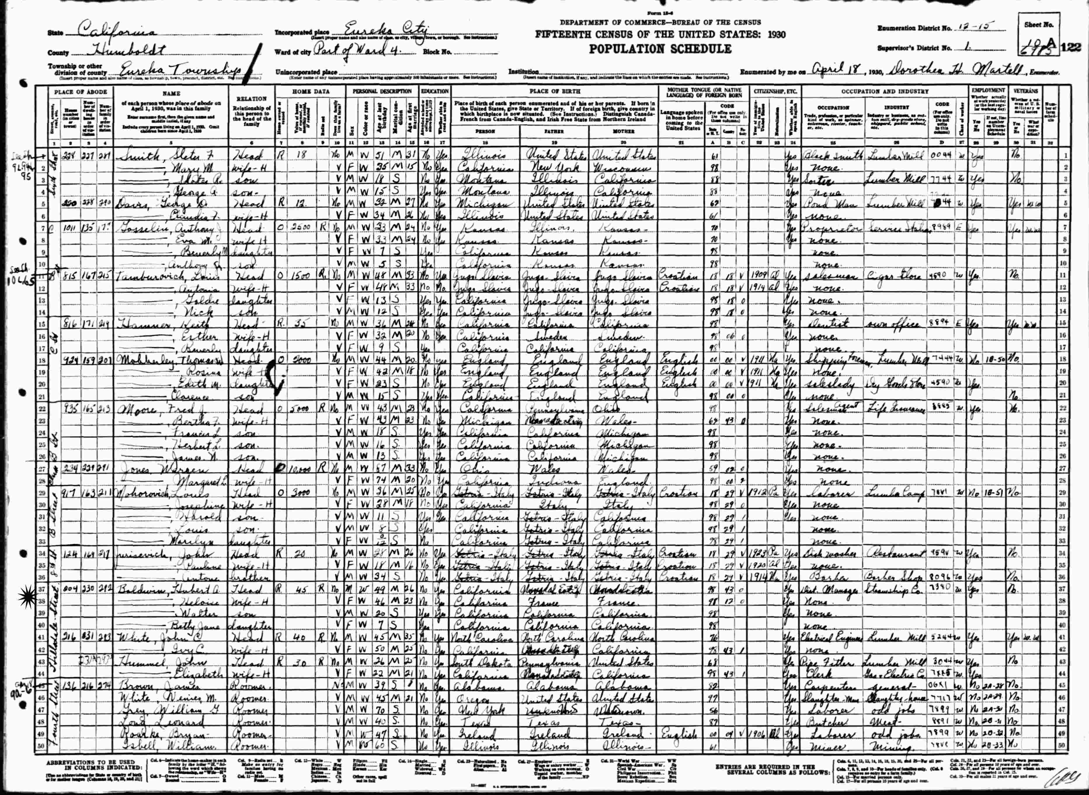 April 18, 1930 - 204 Hillsdale Street, Part of Ward 4, Supervisor's District 1, Enumeration District 12-15, Eureka, Humboldt County, California.