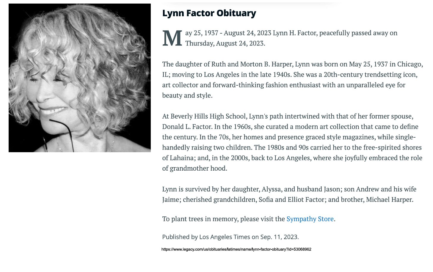 Died: August 24, 2023 in Los Angeles, Los Angeles County, California.