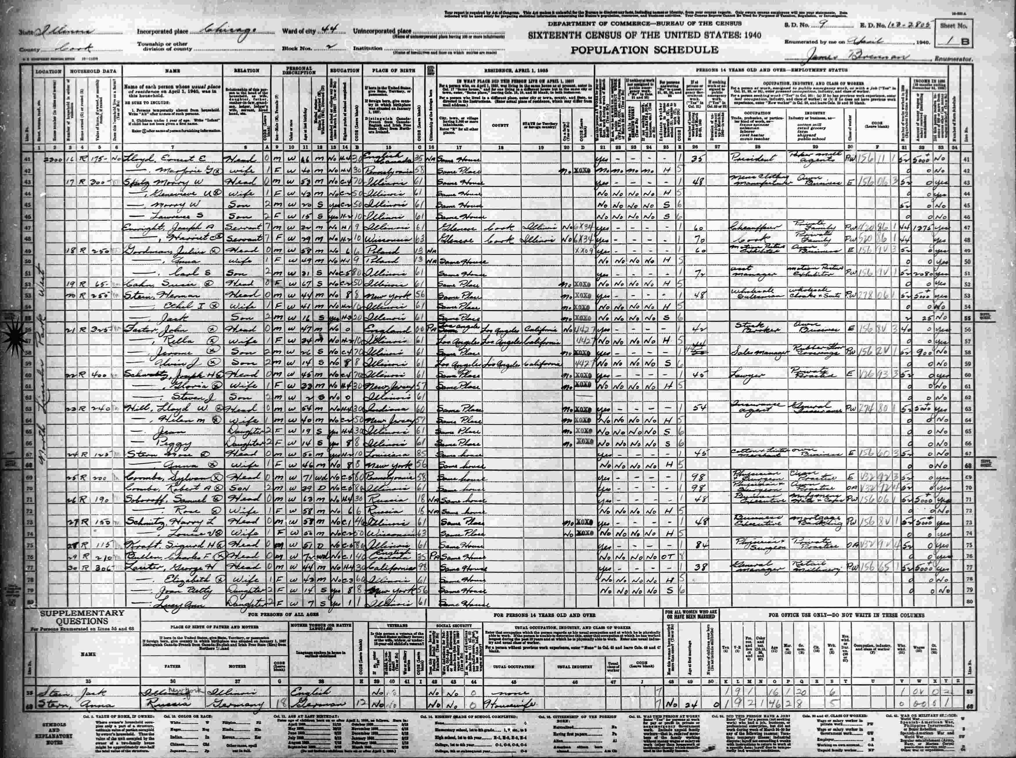 April, 1940 - 2300 North Lincoln Park West, Ward 44, Chicago, Cook County, Illinois.