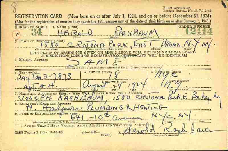 December 17, 1942 - Registration Date.