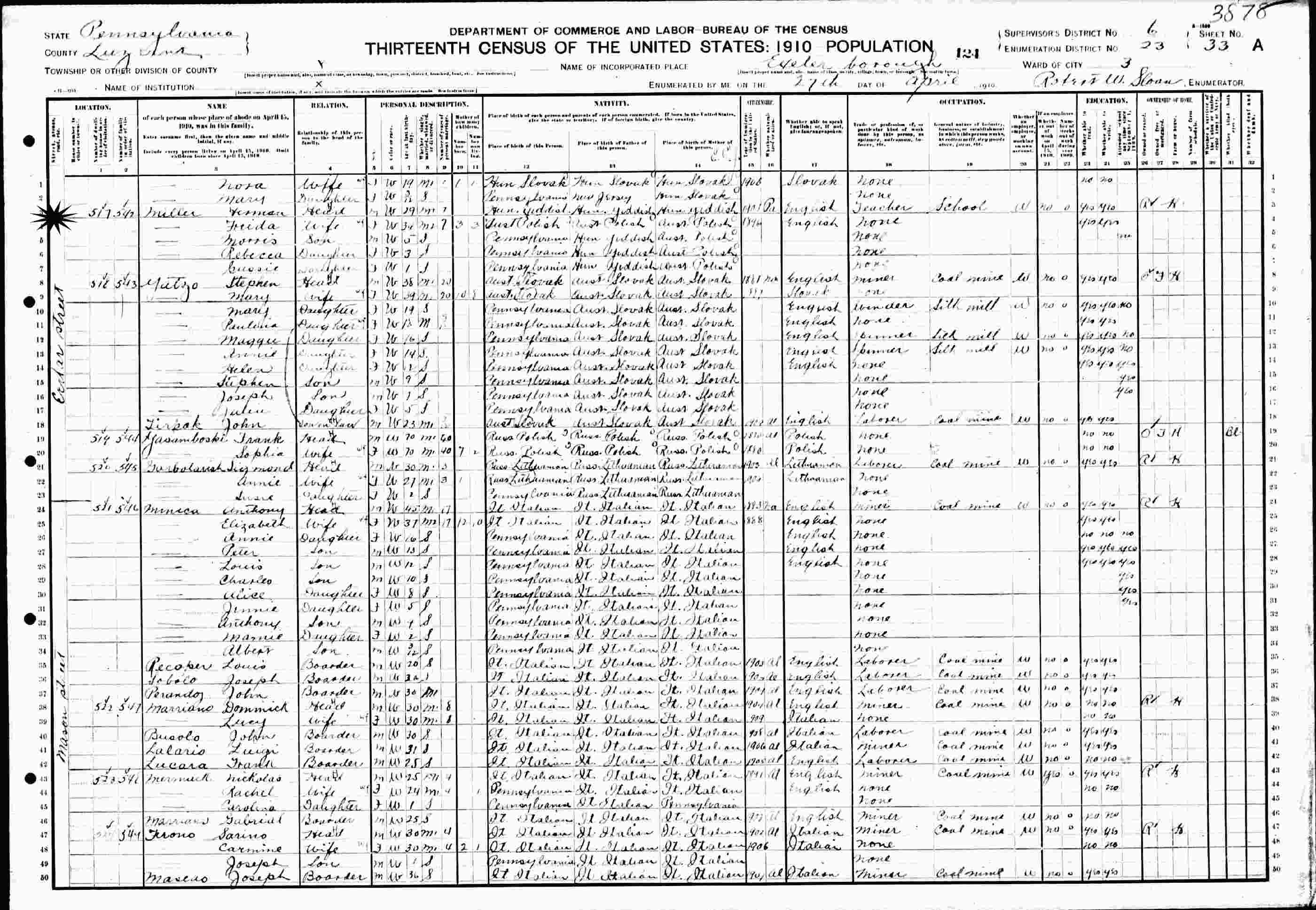 April 27, 1910: Exeter Street, Exeter Ward 3, Luzerne, Pennsylvania.