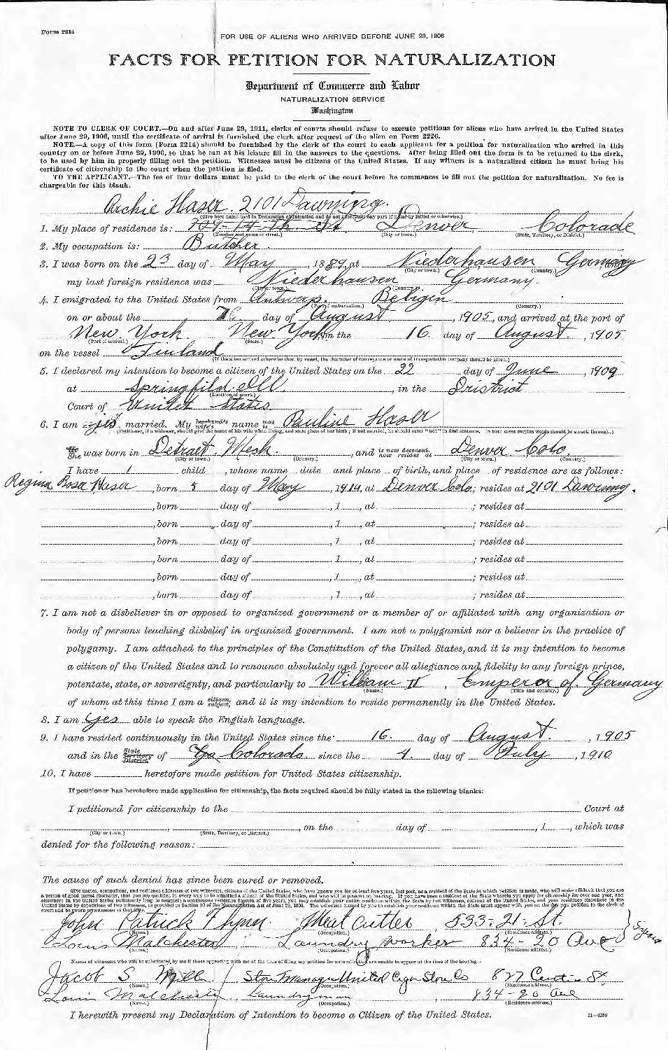 Naturalization: Before June 5, 1907.