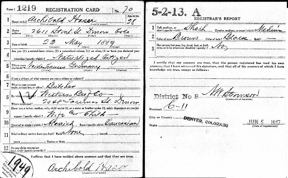 June 5, 1917 - Butcher, Western Beef Co, 2048 Larimer Street, Denver, Denver County, Colorado.