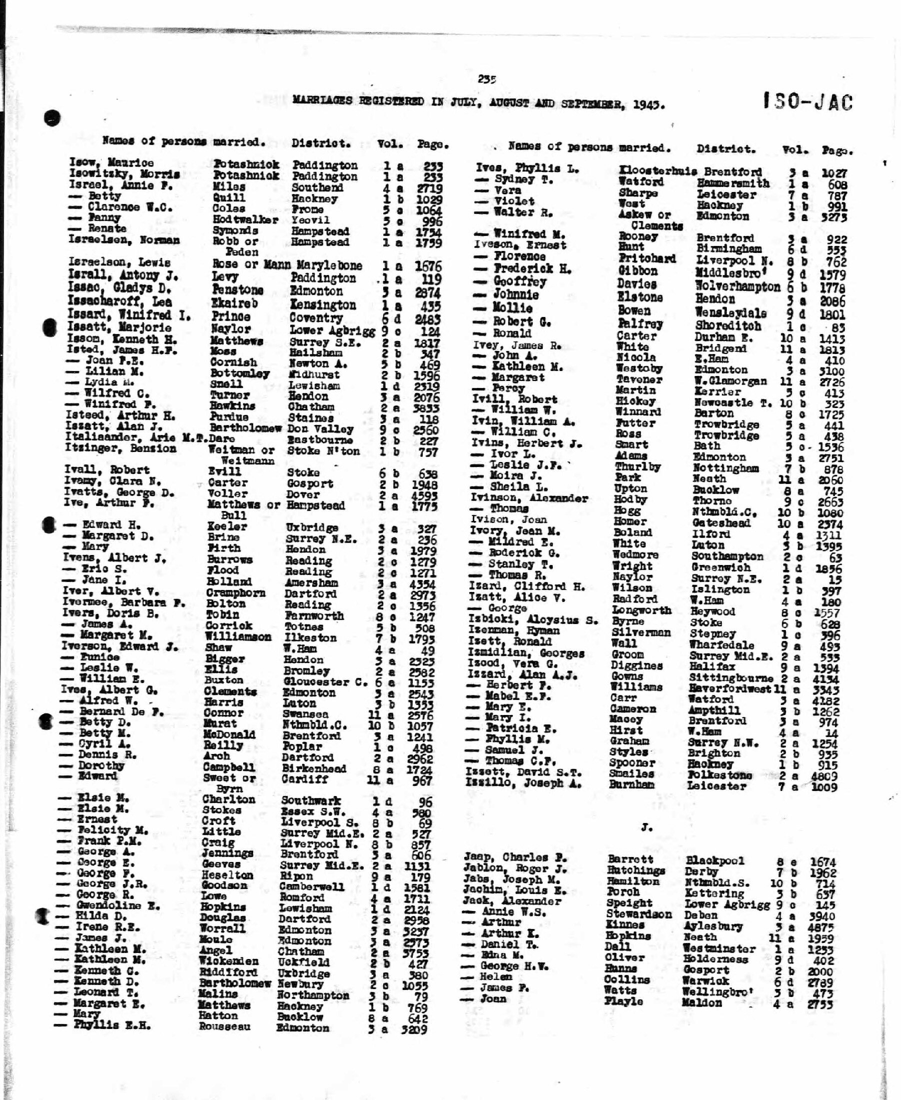 Married: Bertha Weitman About July 1945 in Stoke Newington, London, England. (Marriage Registered: July-August-September 1945, Stoke Newington, London, England; Volume: 1b; Page: 757.)