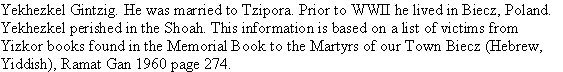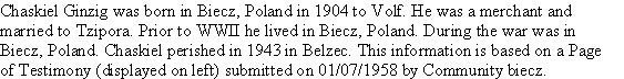AKA: Yekhezkel Gintzig, Chaskiel Gintzig, Chaskiel Ginzig.