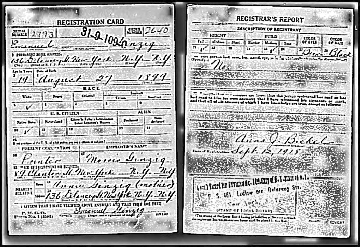 September 12, 1918 - 89 Clinton Street, New York, New York.