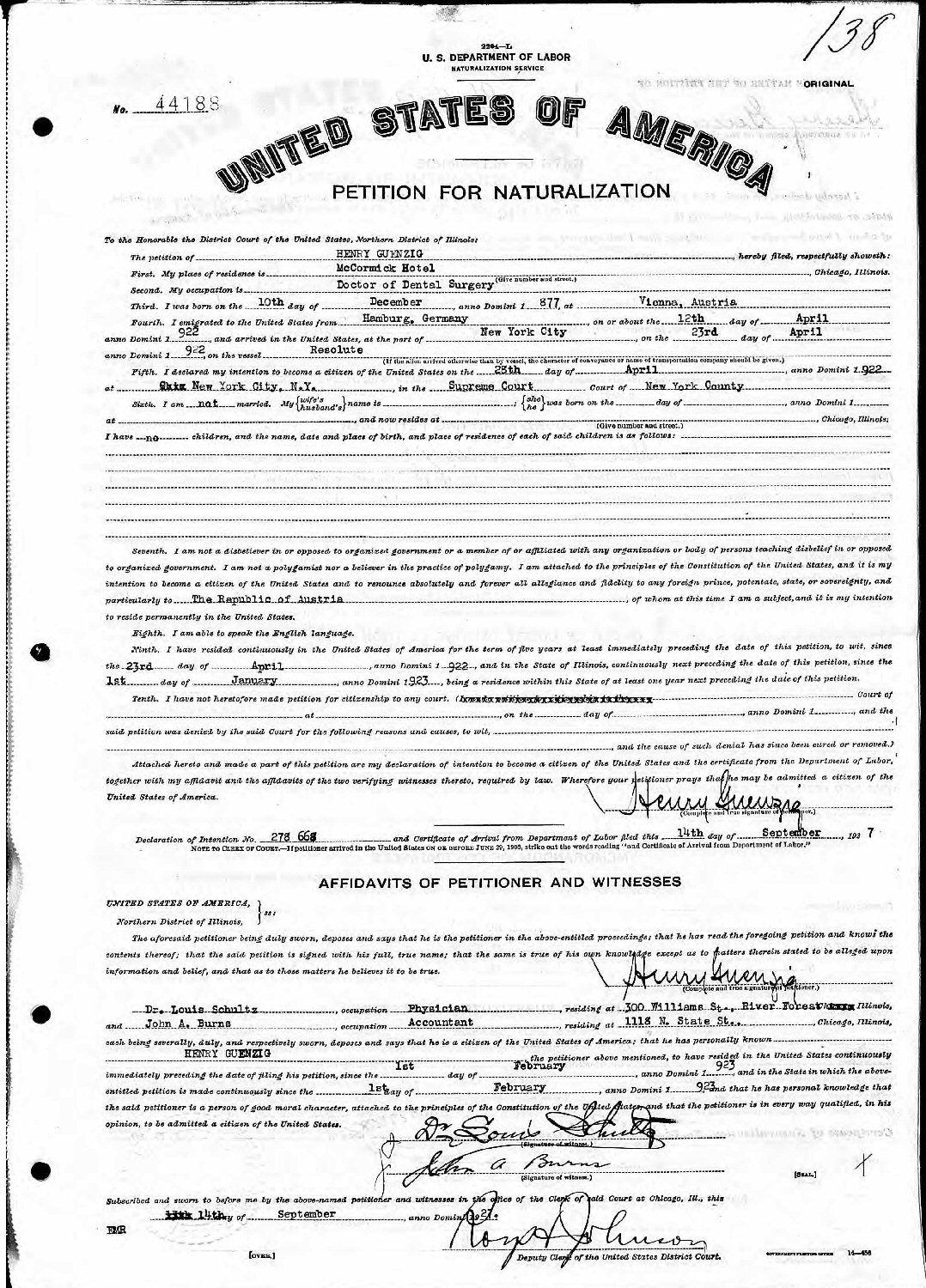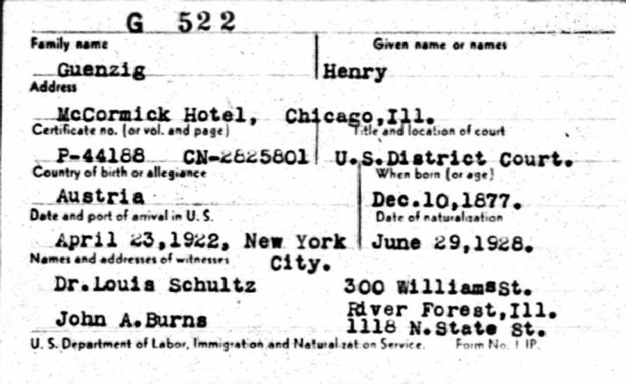 Naturalization: June 29, 1928 in Chicago, Cook County, Illinois. (Certificate No. P=44188 CN-2825801.)