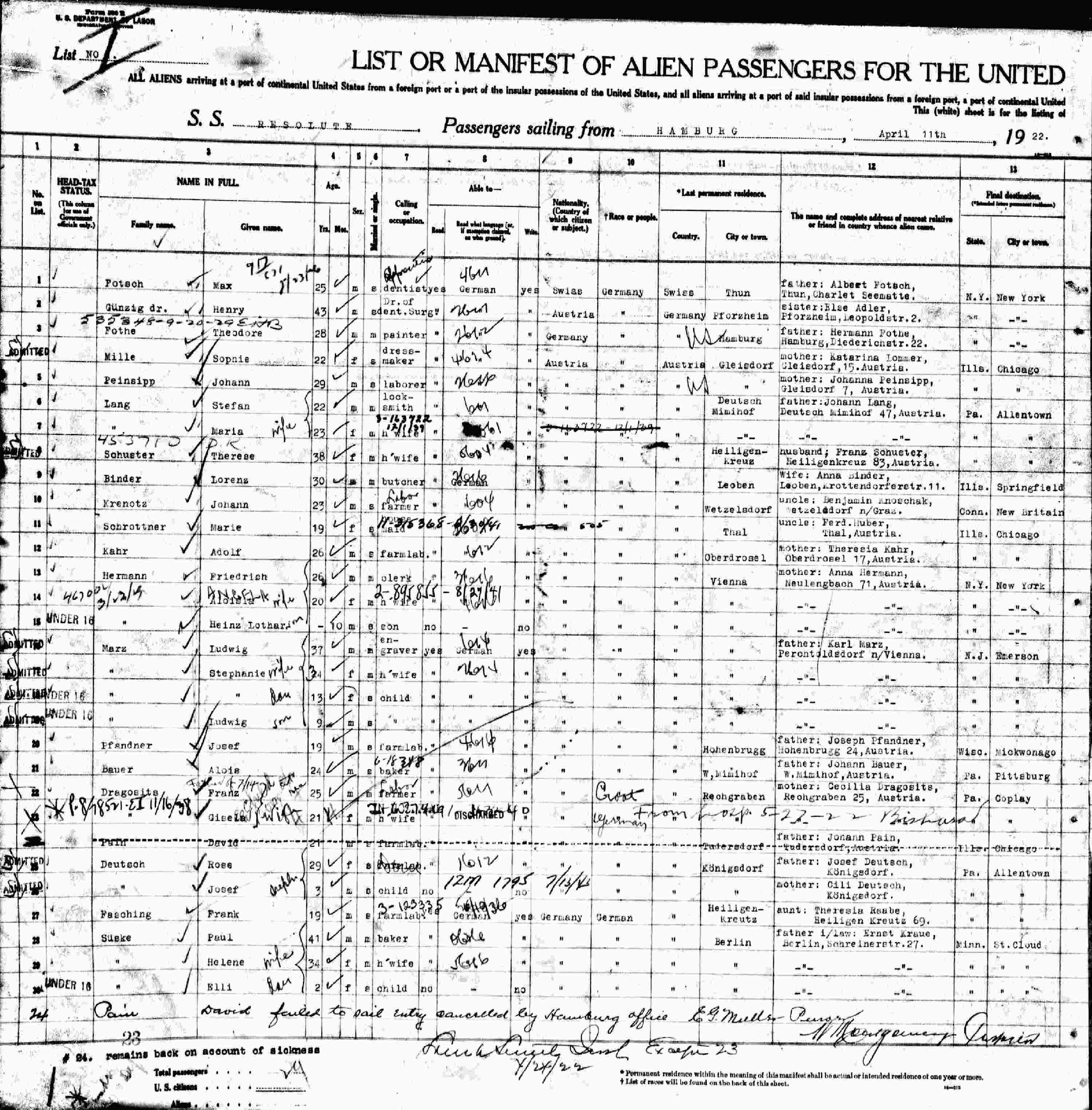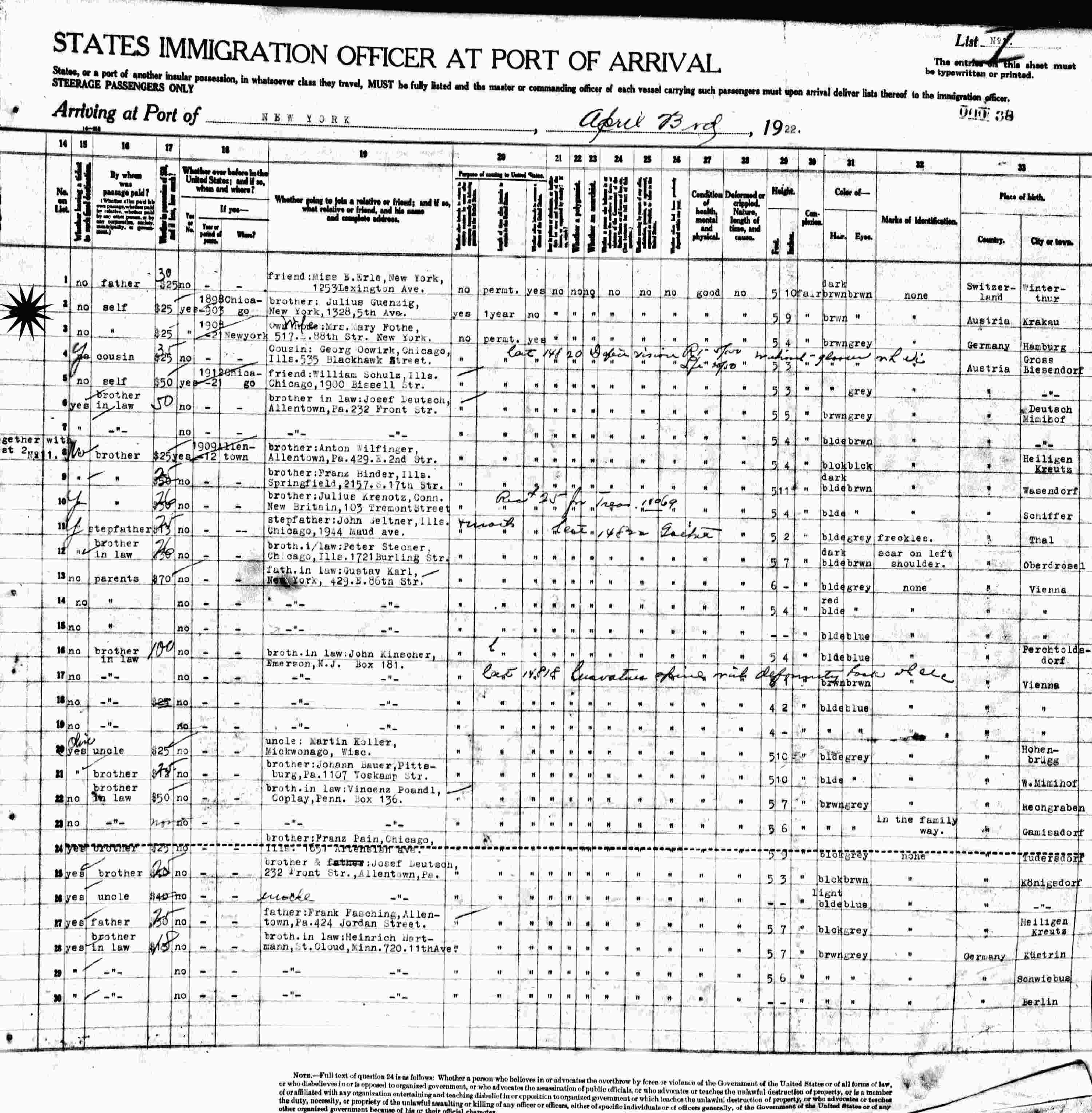 Immigration: April 23, 1922. (Was in States 1898-1903. Went back to Austria?)