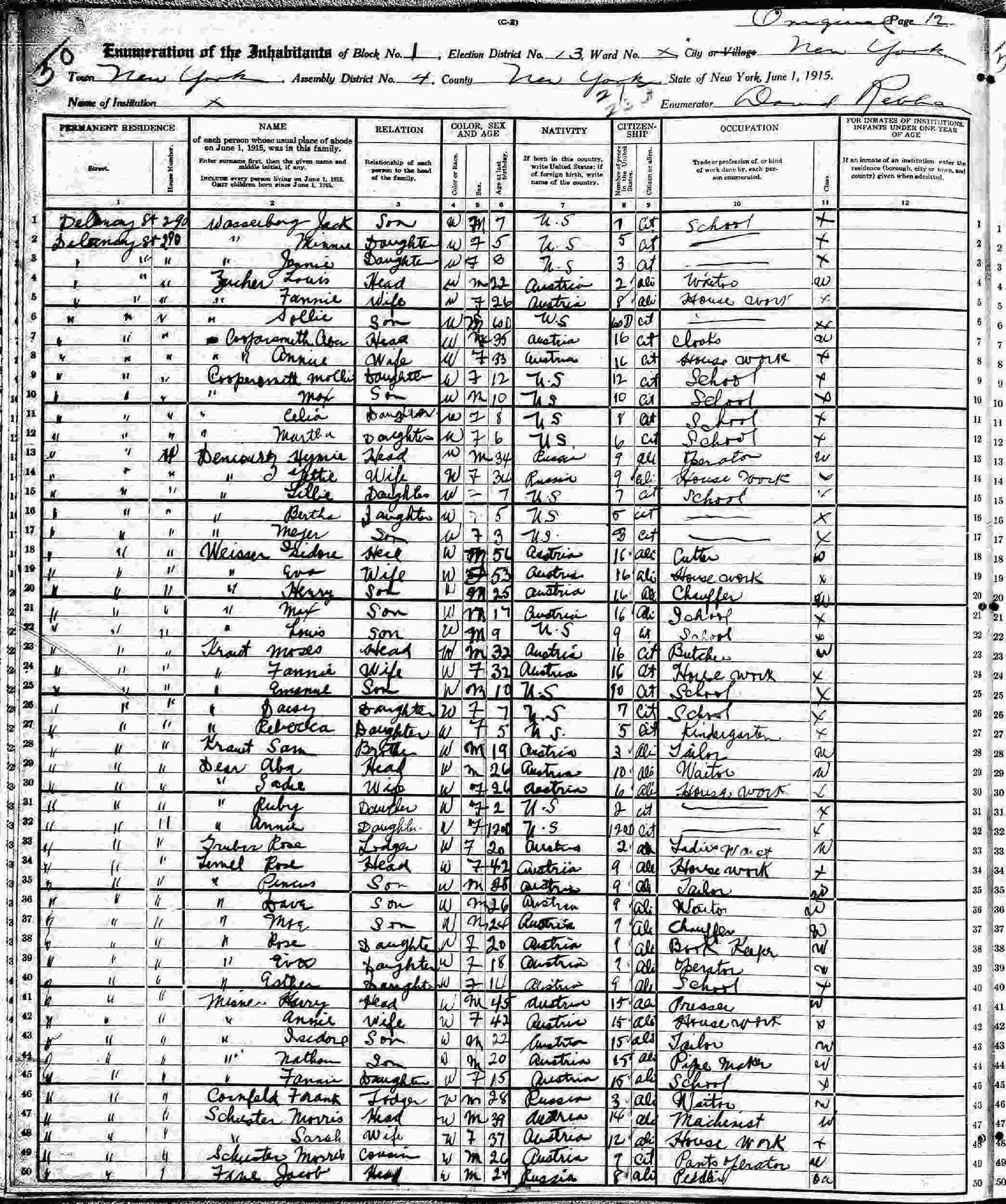 June 1, 1915 - New York State - 290 Delaney Street, Block 1, Assembly District 4, Election District 13, New York City, New York.