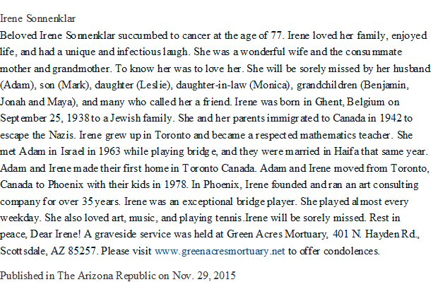 Notes for IRENE WIENER SONNENKLAR: