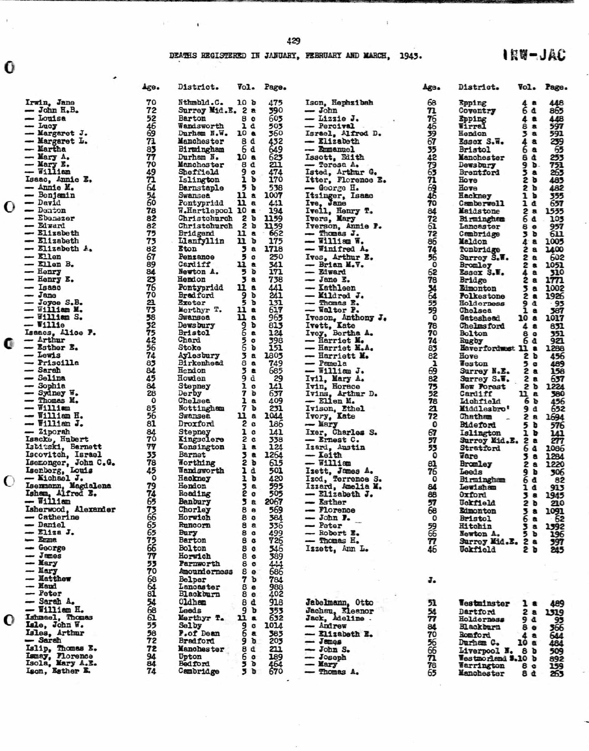 Death Registered: January, February, March 1943; Volume: 1b, Page: 355.